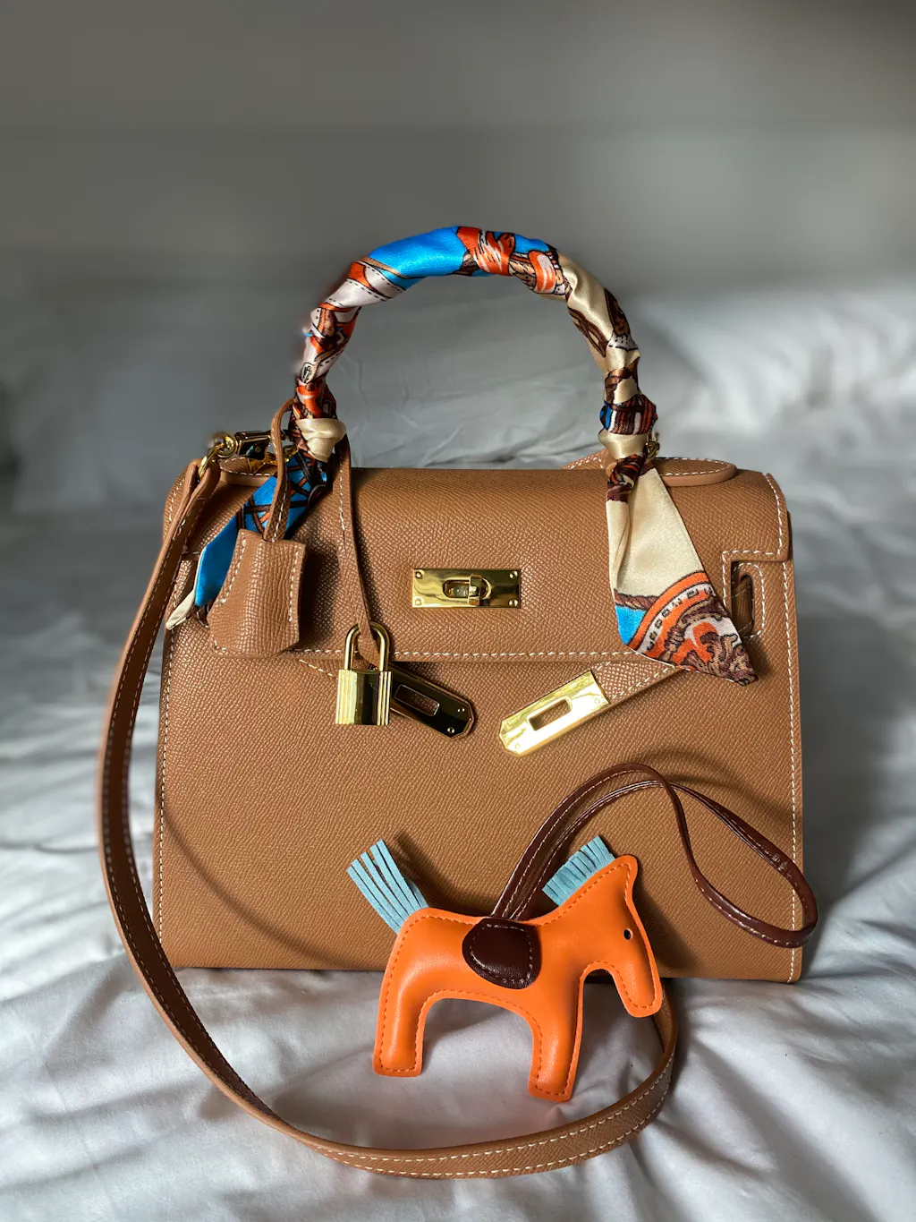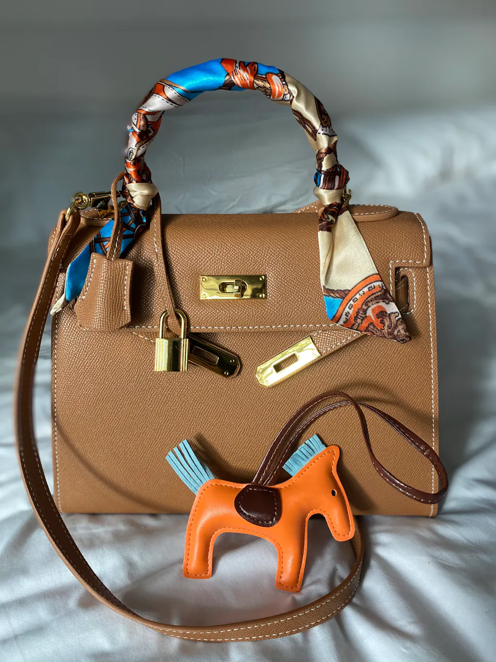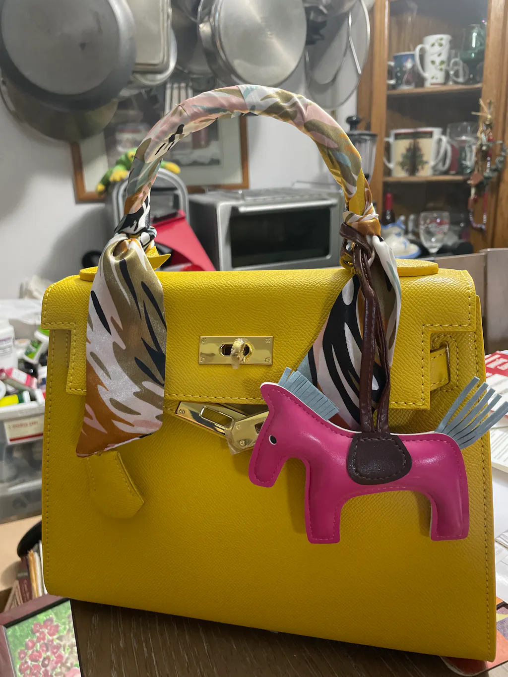 Beautiful handbag. Better than I expected. Well made. The accessories matched perfectly. Smells great and makes a statement. I love this bag!